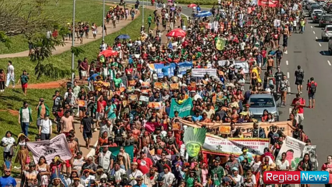 Milhares de indígenas de todo o Brasil marcham, nesta terça-feira (7), pela Esplanada dos Ministérios, em Brasília. O ato integra a 22ª edição do Acampamento Terra Livre (ATL 2026), evento que começou no domingo (5) e é considerado a maior e mais importante mobilização do movimento no país.