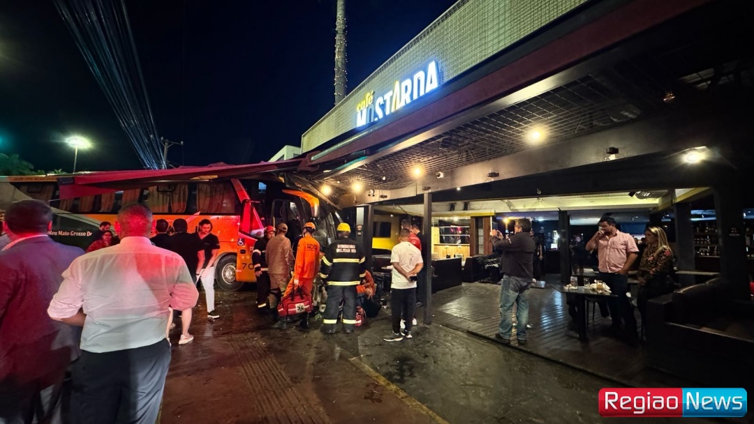 Um grave acidente por pouco não terminou em tragédia no início da noite desta terça-feira, 29 de abril, em Campo Grande. Por volta das 18h45, um ônibus da empresa Via Tour invadiu o bar e restaurante Café Mostarda, localizado sob esquina da Avenida Afonso Pena com a Rua Paraíba, no centro da cidade. O local estava lotado em razão do horário de happy hour.