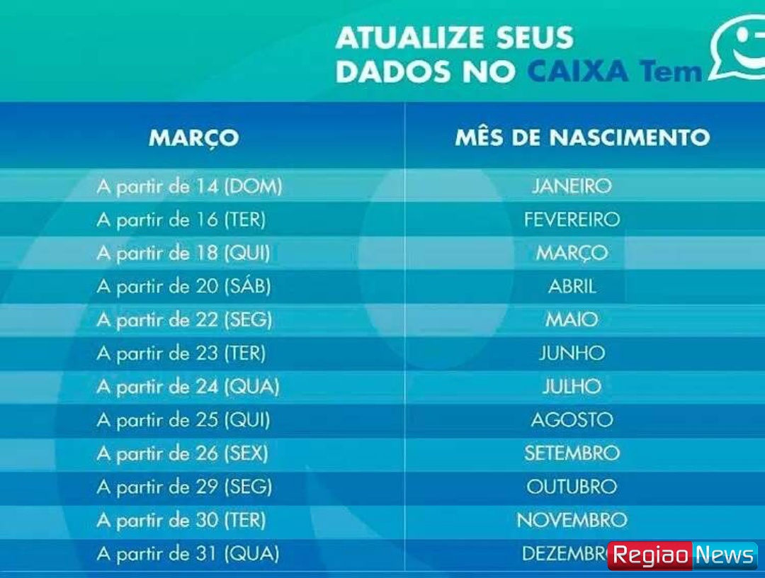 O calendário de atualização seguirá um cronograma conforme o mês de nascimento dos clientes até 31 de março. Confira: