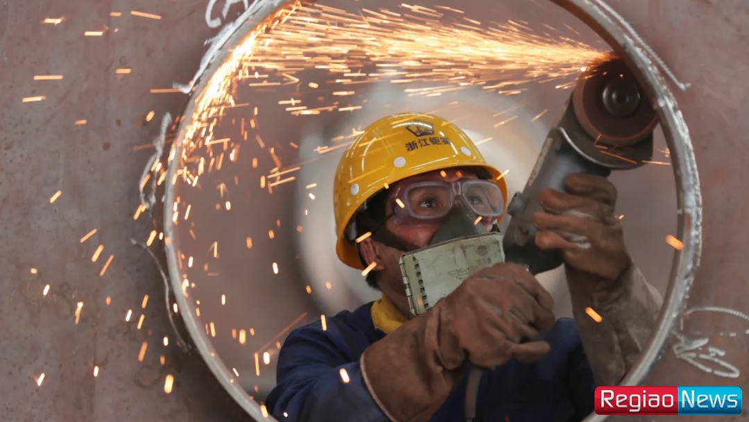 A produção industrial cresceu 5,2% em agosto sobre o ano anterior, mostraram dados do Escritório Nacional de Estatísticas nesta segunda-feira (15), a menor leitura desde agosto de 2024 e mais fraca do que o aumento de 5,7% em julho.