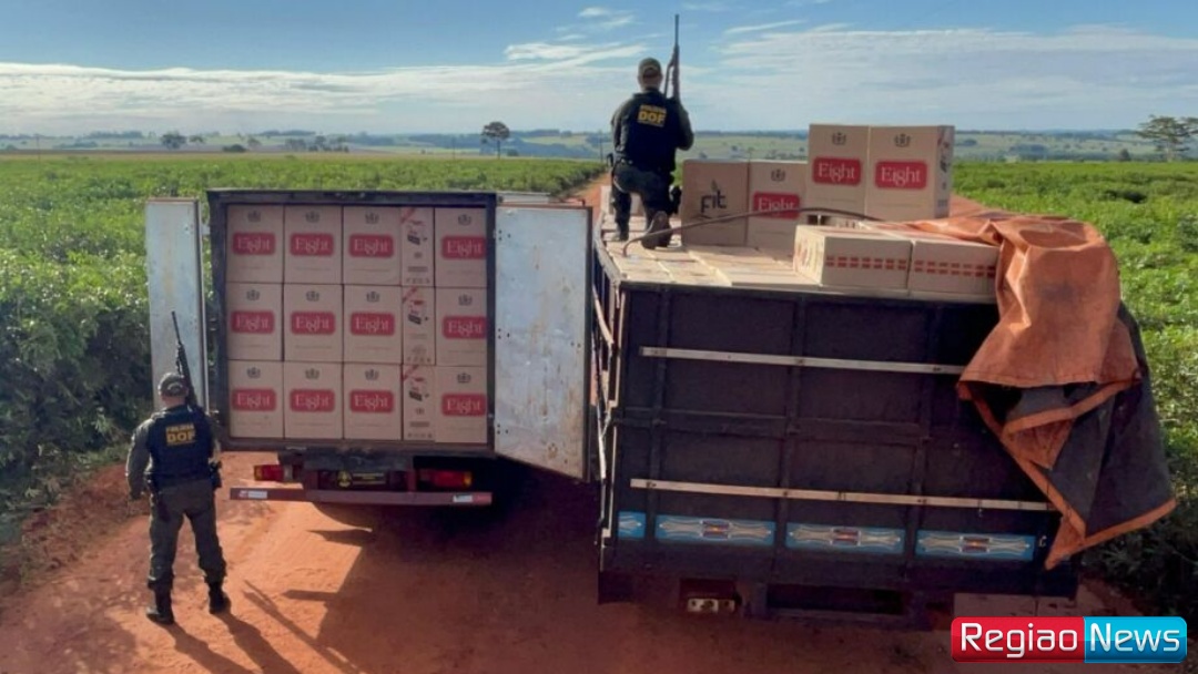 O Departamento de Operações de Fronteira (DOF) apreendeu R$ 1,1 milhão em cigarros contrabandeados no município de Mundo Novo, a 463 km de Campo Grande. Os policiais militares patrulhavam a Estrada do Lixão, próximo à MS-299, quando dois caminhões cruzavam a fronteira do Paraguai para o Brasil. Então, ao irem atrás dos veículos para abordagem, a fuga se iniciou.