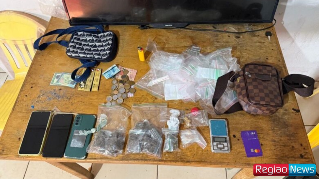 Durante o cumprimento de mandado de busca e apreensão em um imóvel no bairro Boa Vista, os policiais apreenderam drogas, dinheiro, uma balança de precisão e diversos invólucros utilizados na preparação e comercialização de entorpecentes.