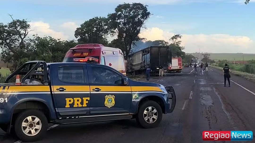 As vítimas estavam em um carro que bateu em uma carreta, ambos pegaram fogo após a colisão.