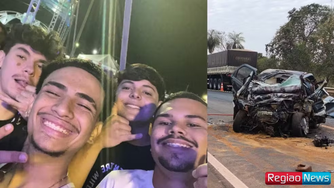 Um grupo de amigos morreu em um grave acidente, em Rio Brilhante (MS), neste domingo (7). Os quatro jovens retornavam de uma festa quando o carro que estavam colidiu de frente com uma carreta, na BR-163.