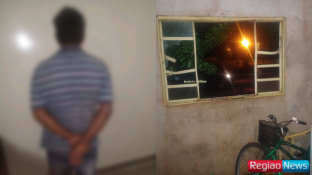 Um homem que não teve a identidade revelada, foi preso em flagrante pela PM na madrugada deste sábado (13), no Distrito do Quebra Coco, após invadir e quebrar móveis, janelas e portas da casa do cunhado.