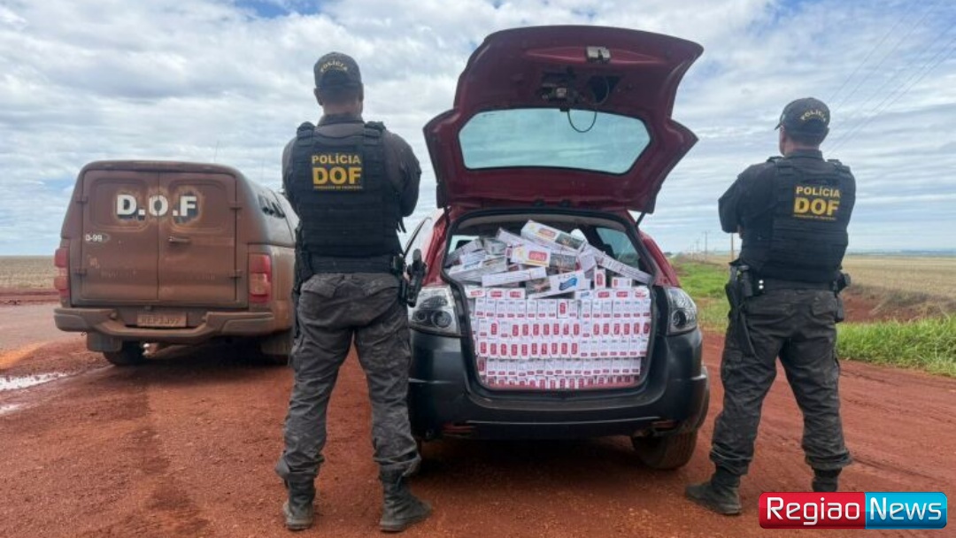 Policiais militares do DOF (Departamento de Operações de Fronteira) apreenderam na quinta-feira (30), na MS-166, em Maracaju, um veículo Ford Ka carregado com mil pacotes de cigarros contrabandeados do Paraguai. Na ação, um homem de 23 anos foi preso em flagrante.