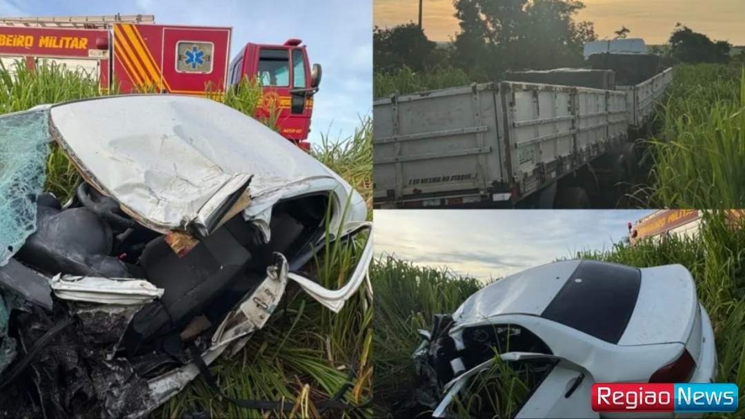 Com o impacto, tanto a carreta quanto o carro foram lançados para a vegetação, às margens da rodovia.