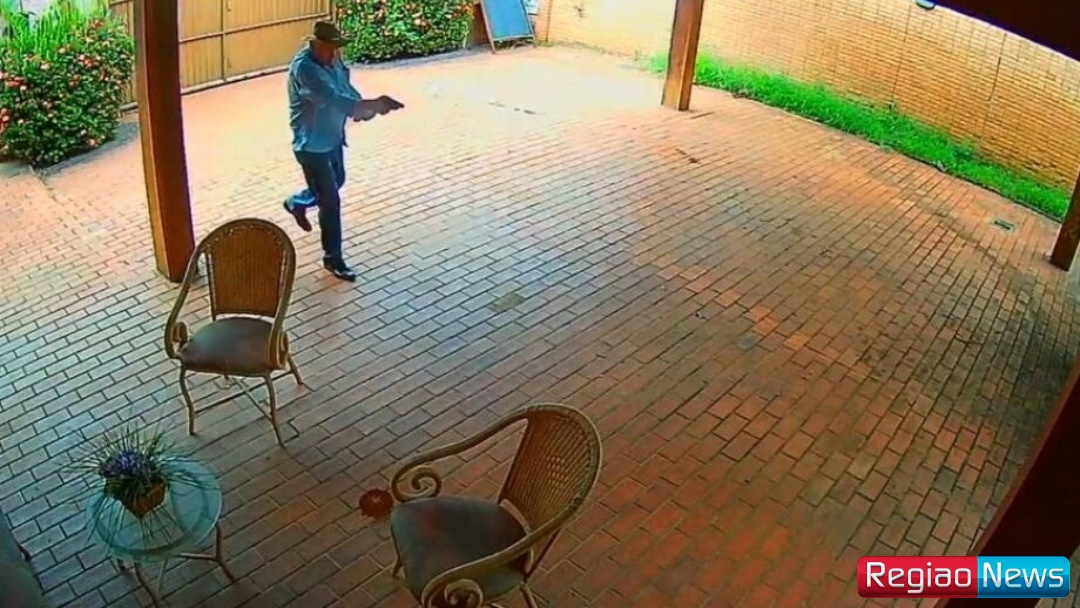 Após isso, é possível ver o chaveiro escapando e saindo da casa, às 13h45min10s.