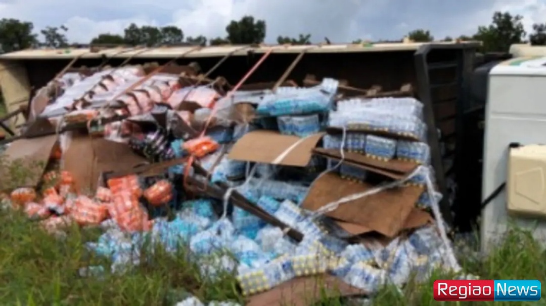 Caminhão carregado com bebidas tombou na tarde de segunda-feira (23), por volta das 15h, na MS-377, em Água Clara, cidade a 192 quilômetros de Campo. Segundo o condutor, ele seguia em direção ao município para realizar entregas de bebidas quando foi fechado por um caminhão-caçamba. Ninguém ficou ferido.