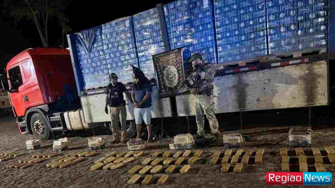 Agentes da polícia paraguaia encontraram 87 pacotes de maconha que estavam escondidos no meio de uma carga de cerveja. A apreensão for feita nesta sexta-feira (7) na Rodovia Py-03, na jurisdição de Jasy Kañy, departamento de Canindeyú, na fronteira com Mundo Novo.
