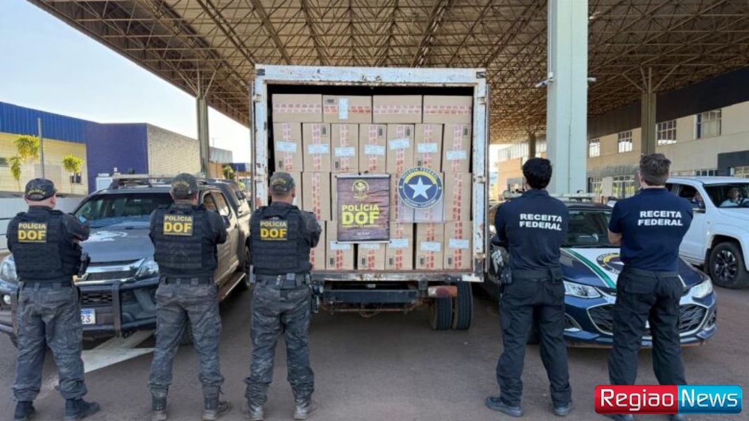 Policiais militares do DOF (Departamento de Operações de Fronteira) e agentes da Receita Federal apreenderam nesta quarta-feira (22), na MS-386, em Mundo Novo, 10 mil pacotes de cigarros contrabandeados do Paraguai, que eram transportados em um caminhão Iveco baú, furtado no Paraná.