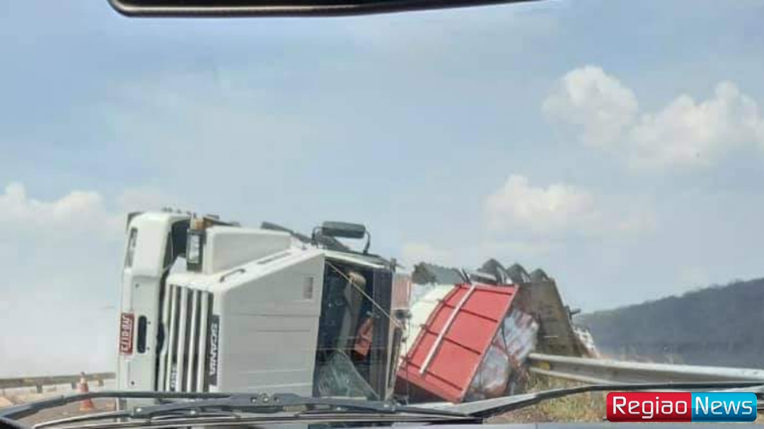 Um caminhão carregado de fécula de mandioca tombou na manhã deste domingo (03) no trecho da serra da BR-060, entre Sidrolândia e Nioaque