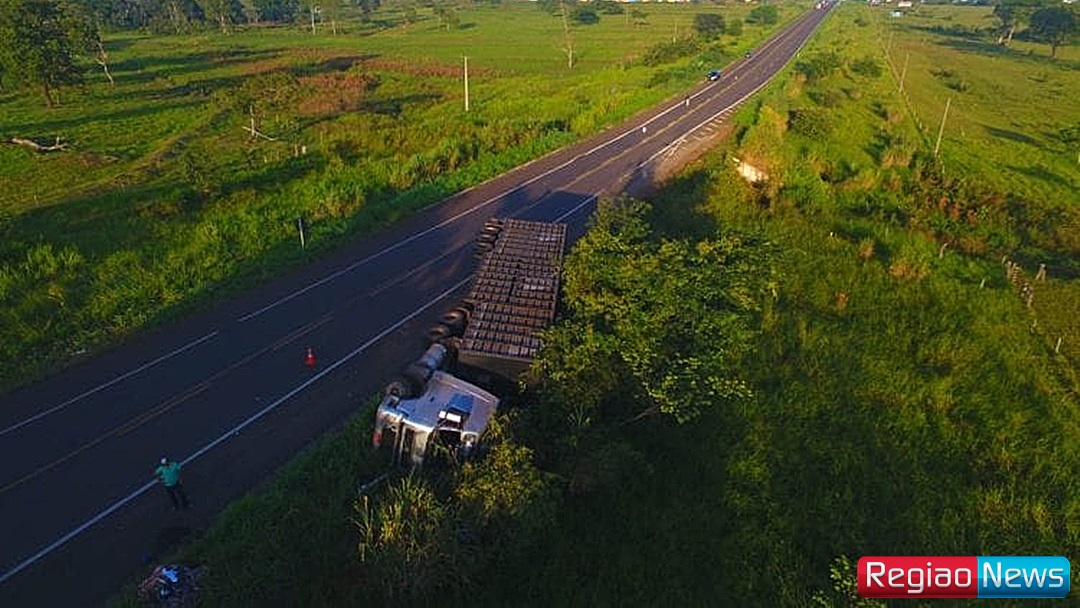 Informações passadas para o site Da Hora Bataguassu são de que o motorista do caminhão de 48 anos seguia pela rodovia quando na baixada Guassu tentou desviar de um ciclista e perdeu o controle da carreta tombando o veículo focando parcialmente fora da pista.