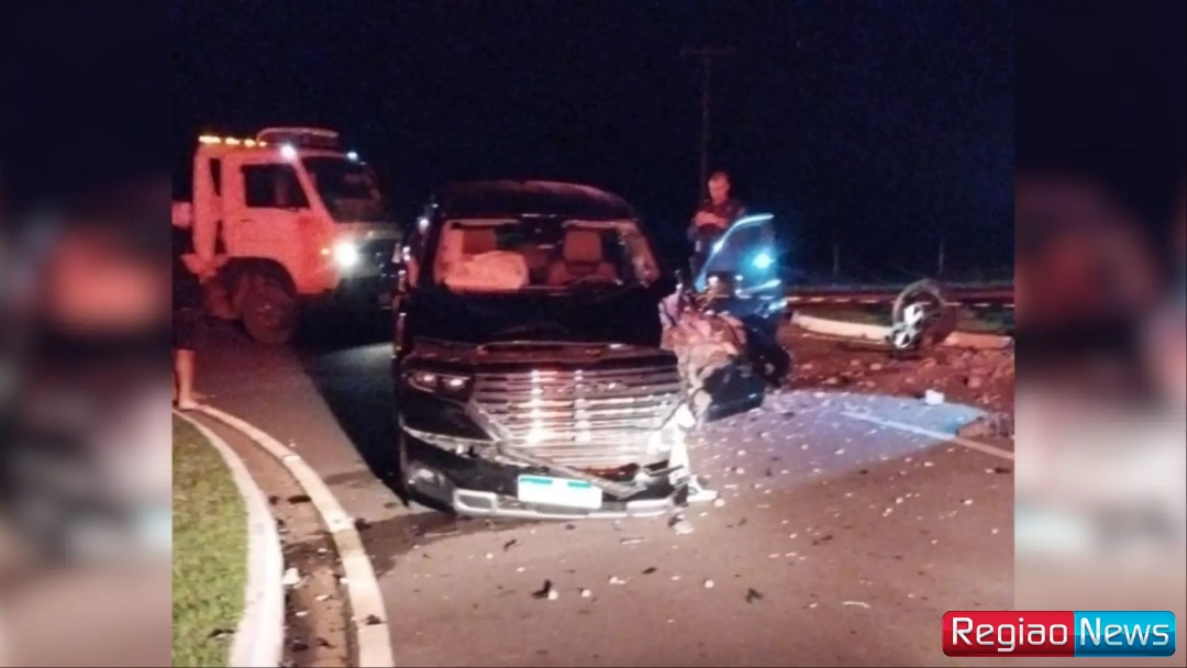O acidente aconteceu na Avenida Jamil Jorge Salomão. A caminhonete era conduzida por uma mulher que perdeu o controle da direção, subiu na rotatória e bateu contra um poste que ficou destruído. A frente da caminhonete também ficou destruída.
