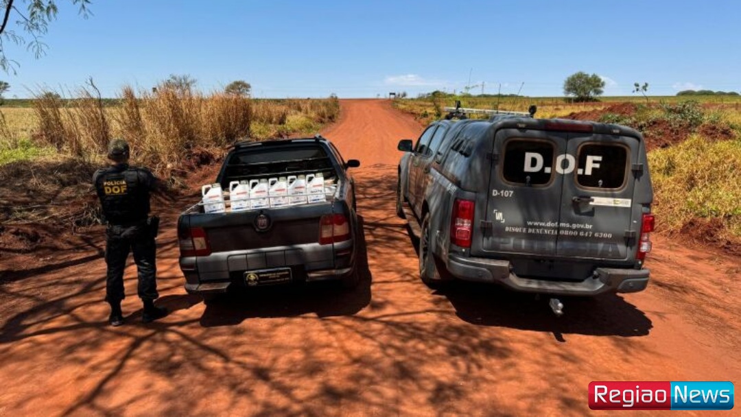 Na tarde desta quarta-feira (24), policiais militares do DOF (Departamento de Operações de Fronteira) apreenderam um veículo Fiat Strada carregado com defensivos agrícolas contrabandeados do Paraguai. A ação ocorreu na Aldeia Lima Campo, em Ponta Porã, e resultou na prisão em flagrante de um homem de 25 anos.