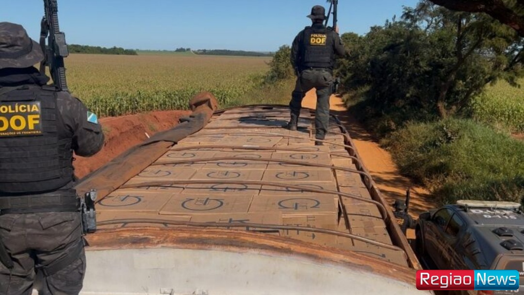 Nesta segunda-feira (19), policiais militares do DOF (Departamento de Operações de Fronteira) apreenderam uma carreta caçamba carregada com mais de 42 mil pacotes de cigarros contrabandeados do Paraguai, em Dourados. Na ação ninguém foi preso.