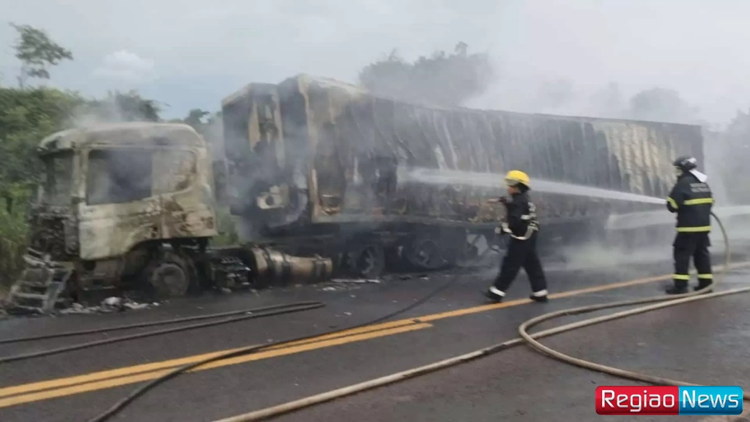 A carga de carne não foi atingida diretamente pelo fogo, mas sofreu danos devido ao calor intenso. O trecho na rodovia foi interditado e gerou congestionamento. As causas do incêndio ainda serão apuradas.