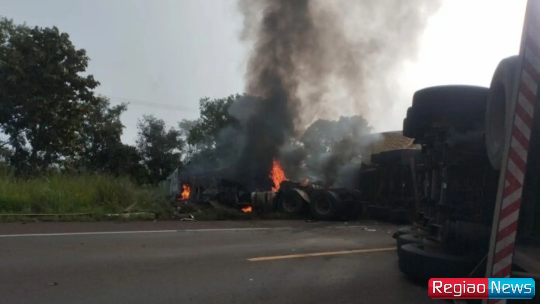 Um grave acidente envolvendo duas carretas provocou a interdição total da BR-262 na manhã desta sexta-feira (13), no trecho entre Água Clara e Ribas do Rio Pardo. Uma das carretas acabou pegando fogo com a batida.