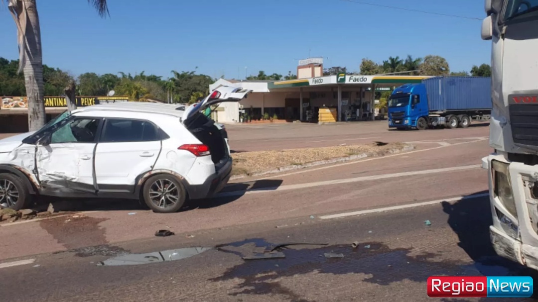 A motorista estava saindo de um posto de combustível às margens da rodovia quando teria olhado só para um lado da pista. Em seguida, acabou atingida pela carreta. Com o impacto da batida, o carro foi jogado em cima de um canteiro e acertou uma placa de sinalização.