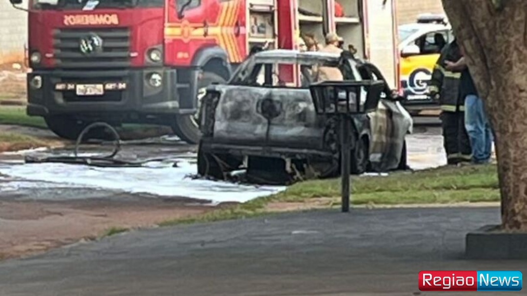 O Corpo de Bombeiros foi acionado e chegou a tempo de conter o incêndio, mas o fogo já havia consumido totalmente o carro.