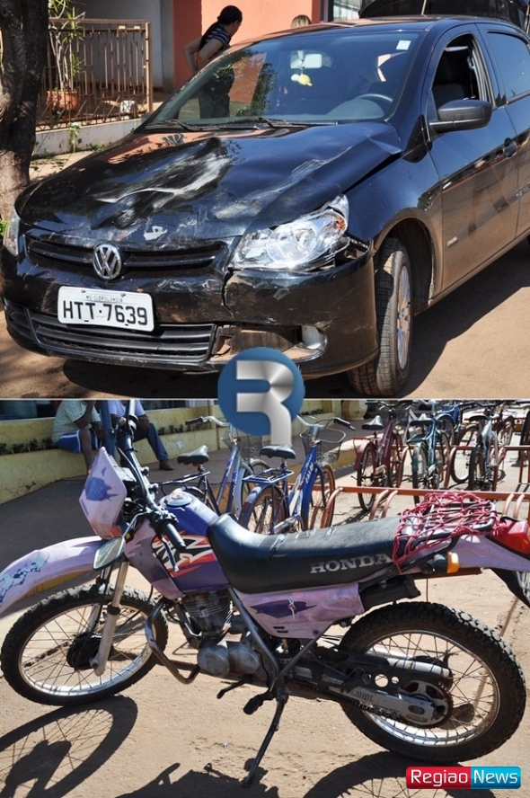 Claudio Pereira de Araújo de 43 anos seguia com o veiculo Gol placas HTT-7639 de Sidrolândia pela Rua Santa Catarina quando no cruzamento das vias citadas foi surpreendido pela motocicleta placas HRW-0722 de Caracol conduzido por Marcelino de Arruda de 48 anos que tinha como passageira Dona Euza Ferreira de 42 anos.
