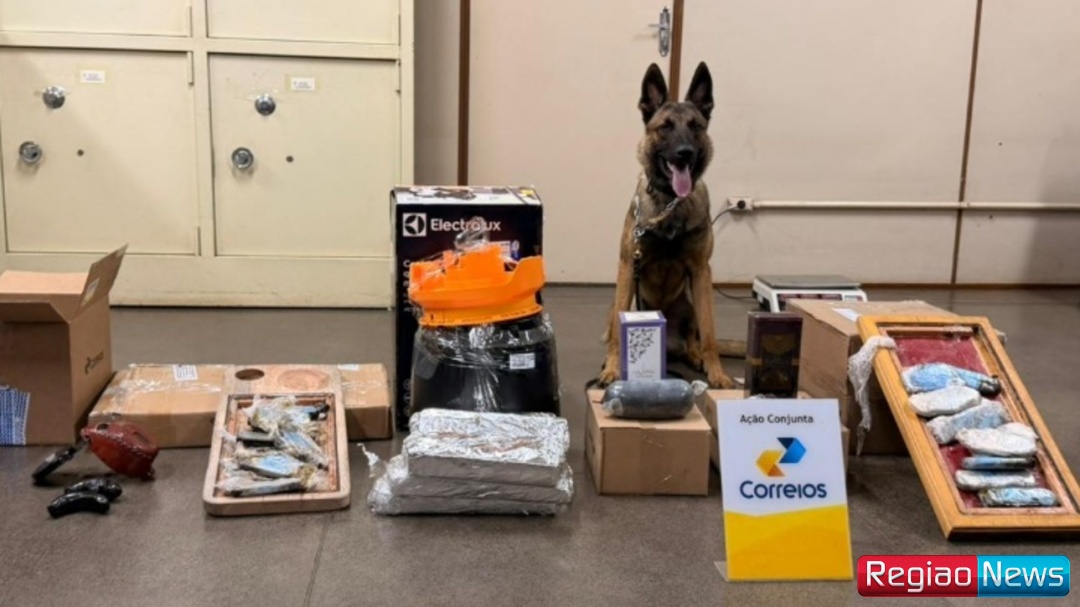 Ainda segundo a polícia, durante as vistorias, o cão da raça Malinois (Pastor Belga) indicou seis embalagens despachadas nos Correios, que foram abertas e continham maconha prensada e haxixe marroquino.