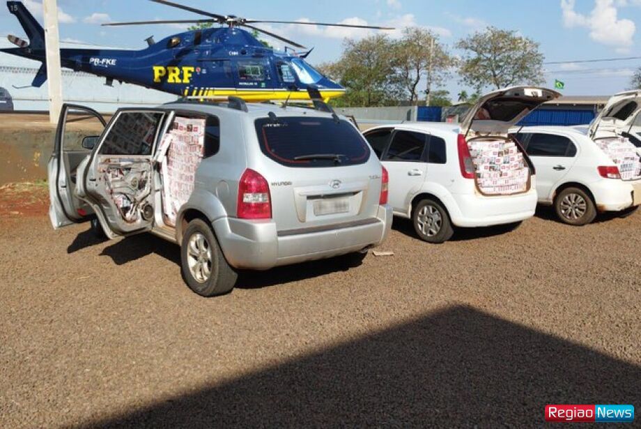 O condutor do Hyundai/Tucson foi preso e todos os veículos e cigarros encaminhados à Polícia Judiciária local.