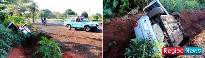 Mauricio relatou aos Policiais que ao desviar de um carro que seguia a sua frente, o mesmo veio perder o controle do celta vindo cair em uma vala localizada as margens da rodovia.