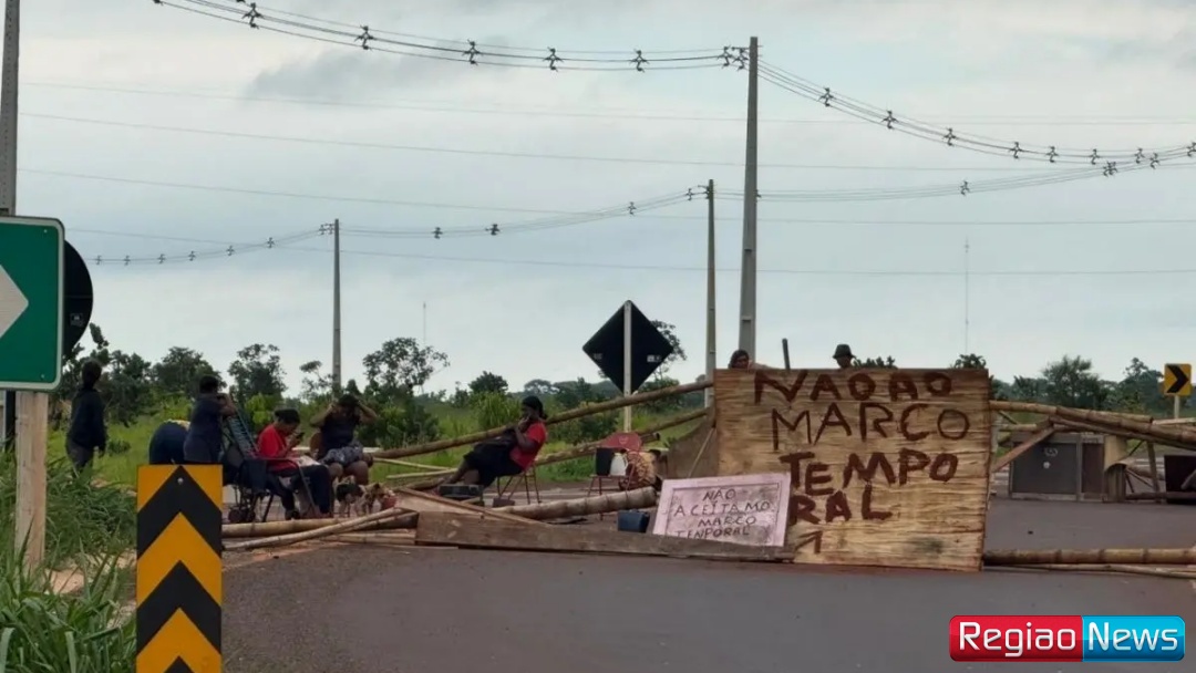 A manifestação começou por volta das 14h30 desta quinta-feira (11), por indígenas que vivem em uma área em que foi retomada, e reivindicam mudanças no marco temporal para a demarcação de terras. Cerca de 50 pessoas participam do movimento, acompanhado pela Polícia Militar.