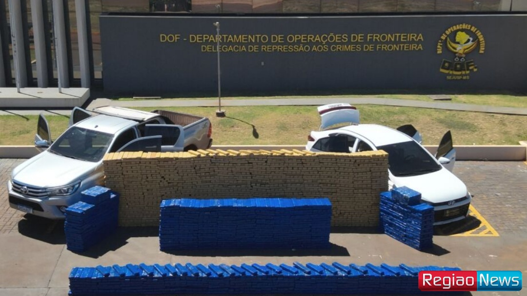 A droga e os veículos foram encaminhados a Delegacia Especializada em Repressão aos Crimes de Fronteira (Defron), em Dourados.