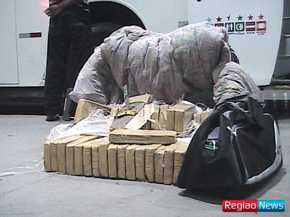 Em menos de uma hora, Policiais Militares do 10º Batalhão, prenderam ontem (11) duas pessoas e apreenderam 57 kg de maconha na rodoviária de Campo Grande.