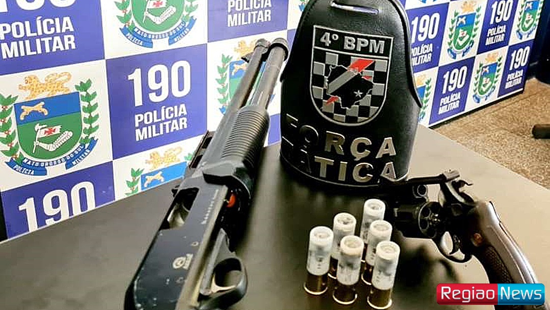 O autor recebeu voz de prisão por posse irregular de arma de fogo e ameaça (violência doméstica) e foi encaminhado ao 1º DP, juntamente com as armas de fogo para as providências cabíveis.