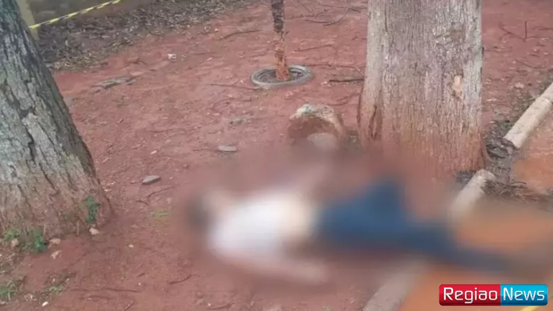 O homem apresentava lesões no rosto. O corpo foi encontrado caído embaixo de uma árvore ao lado de uma poça de água da chuva.