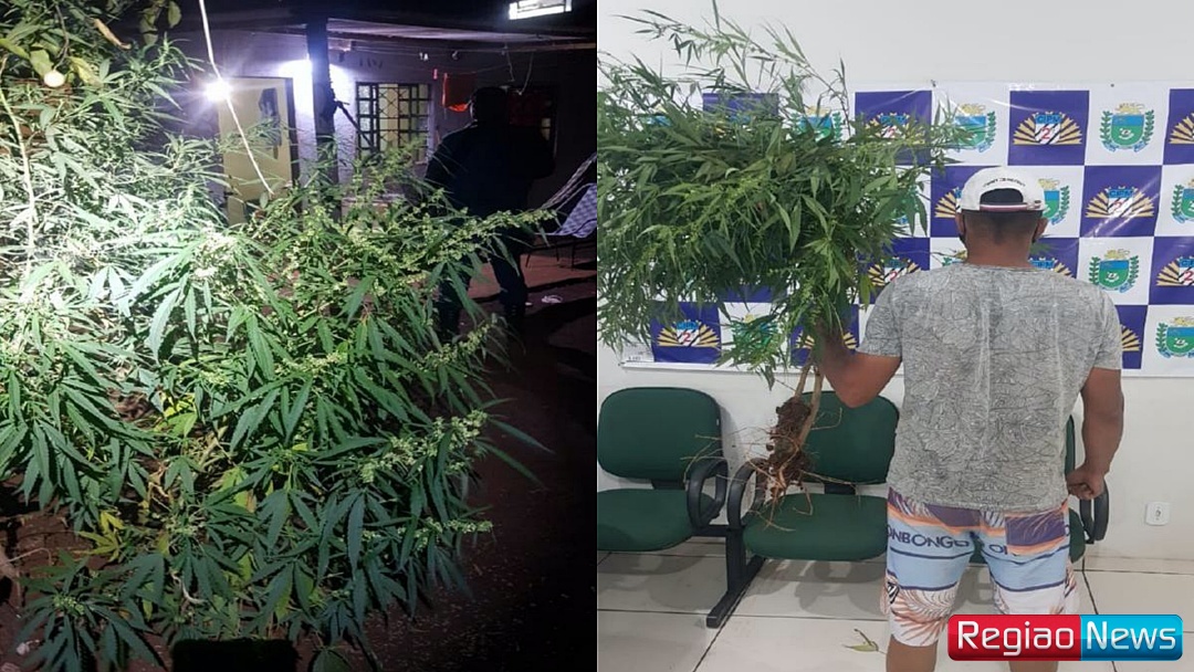 O homem foi levado para a Delegacia de Polícia Civil e os pés de maconha foram retirados do local. Ele vai responder por tráfico de drogas.