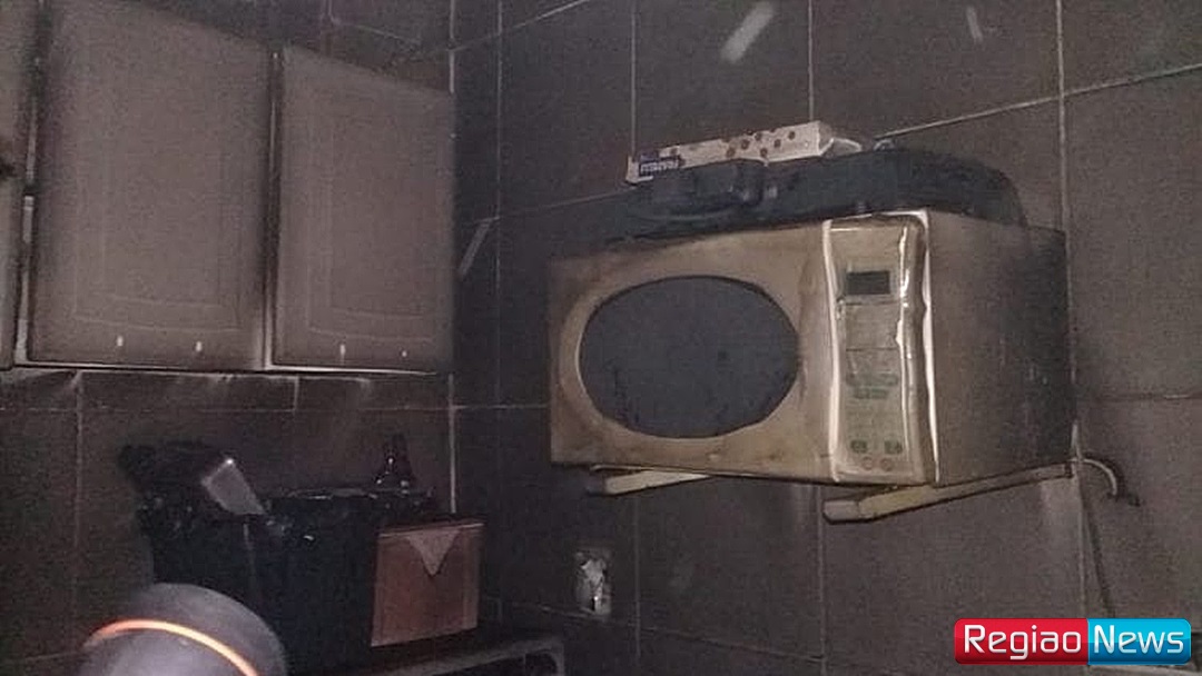 A equipe combateu o fogo no quarto, banheiro, cozinha e sala. Móveis como o sofá, televisão, armários, computador e ventilador foram totalmente danificados pelas chamas.