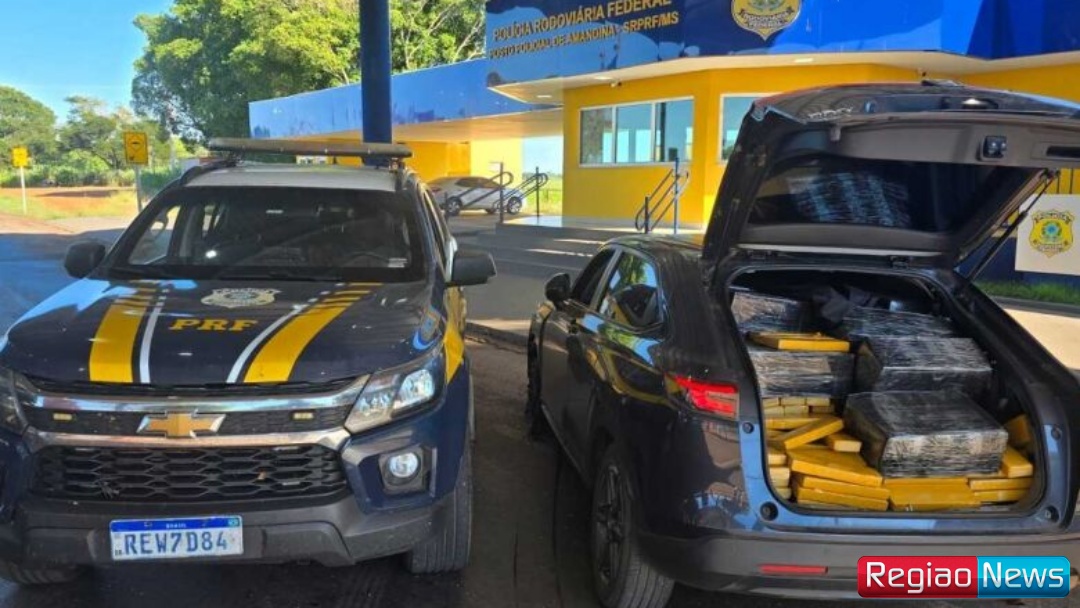 Ao todo, foram 1.273 quilos divididos em 1.026 tabletes que estavam em 11 fardos dentro do Honda HRV com placas de São Paulo (SP).