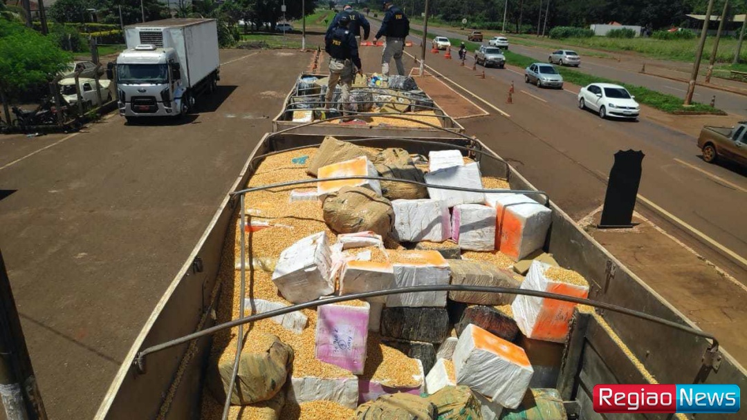 Maconha em carreta com milho a granel pesa quase 30 toneladas