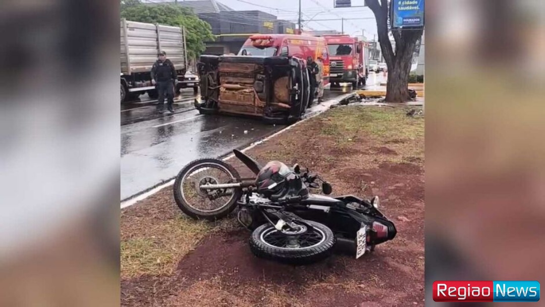 Motociclista é socorrido em estado grave após acidente em Dourados