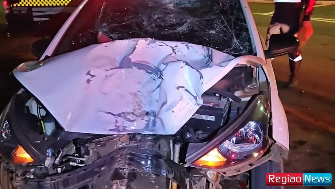 O carro era conduzido por um motorista de aplicativo, que carregava uma passageira no momento da colisão. Ela teve ferimentos leves, mas ele não ficou ferido.