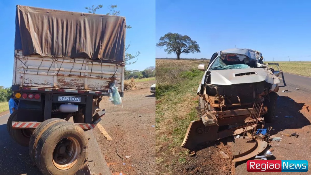 Motorista de uma Hilux, de 31 anos, ficou preso nas ferragens após colidir na traseira de uma carreta Scania na manhã desta quarta-feira (13), na MS-157, no km 33, entre Itaporã e Maracaju.