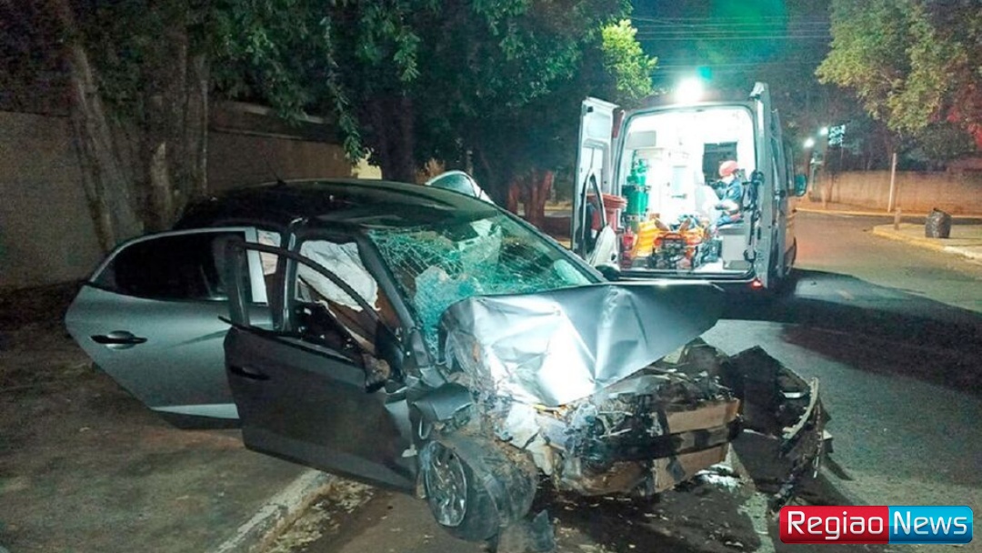 Homem de 22 anos ficou ferido na madrugada desta segunda-feira (29) após bater o carro que dirigia contra uma árvore, na Rua Marechal Mallet, na cidade de Aquidauana – distante 146 quilômetros de Campo Grande.