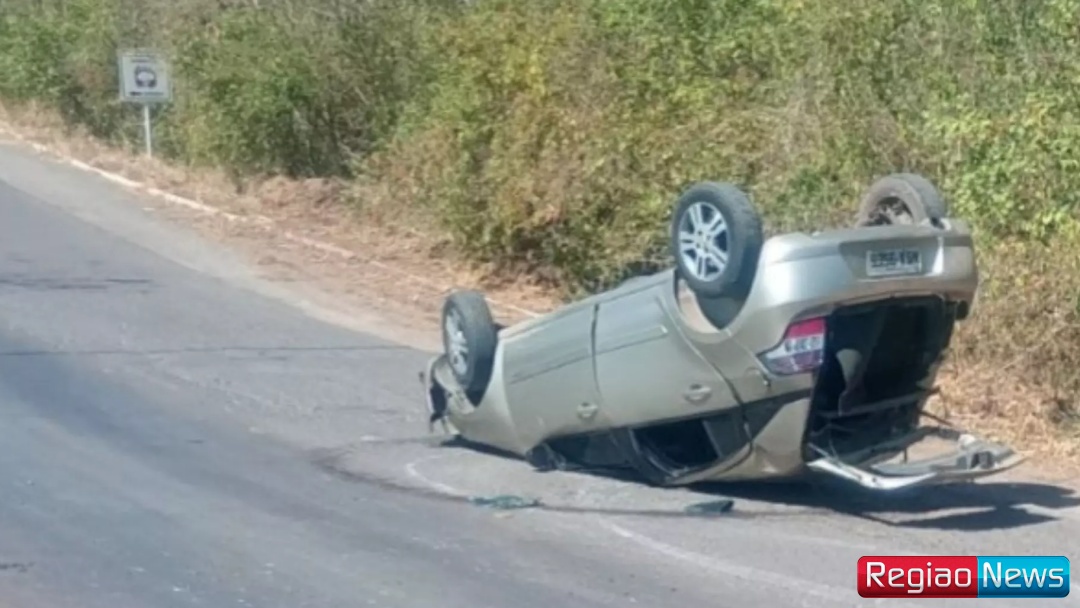 Motorista perde controle e capota carro em curva de rodovia na fronteira com a Bolívia