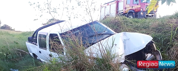 A caminhonete ficou bastante danificada. O motorista e a passageira tiveram ferimento leves.