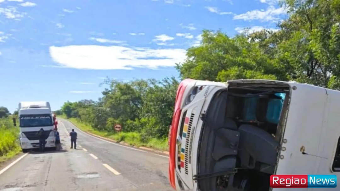 Um ônibus de transporte de trabalhadores tombou após colisão com uma carreta na MS-240, entre Paranaíba e Inocência, a mais de 300 quilômetros de Campo Grande, na manhã de quinta-feira (16).