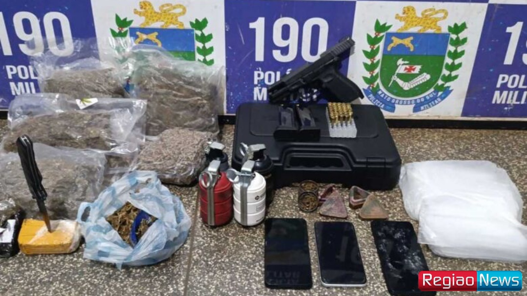 A Polícia Militar realizou a apreensão de arma de fogo, munições, granada de efeito moral e entorpecentes durante o primeiro dia da Operação Saturação, desencadeada em Ponta Porã. A ação ocorreu nesta quinta-feira, dia 12 de março, no bairro Residencial Ponta Porã, após atendimento de uma ocorrência de ameaça.
