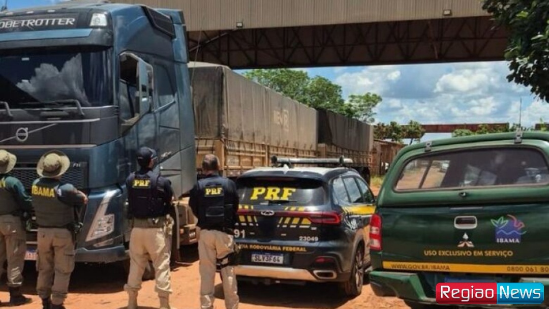 O condutor apresentou uma nota fiscal e Guia Florestal emitidas no Mato Grosso, porém os documentos apresentaram divergências de datas, espécies e origem da carga, além do homem não informar corretamente o local e data de carregamento.