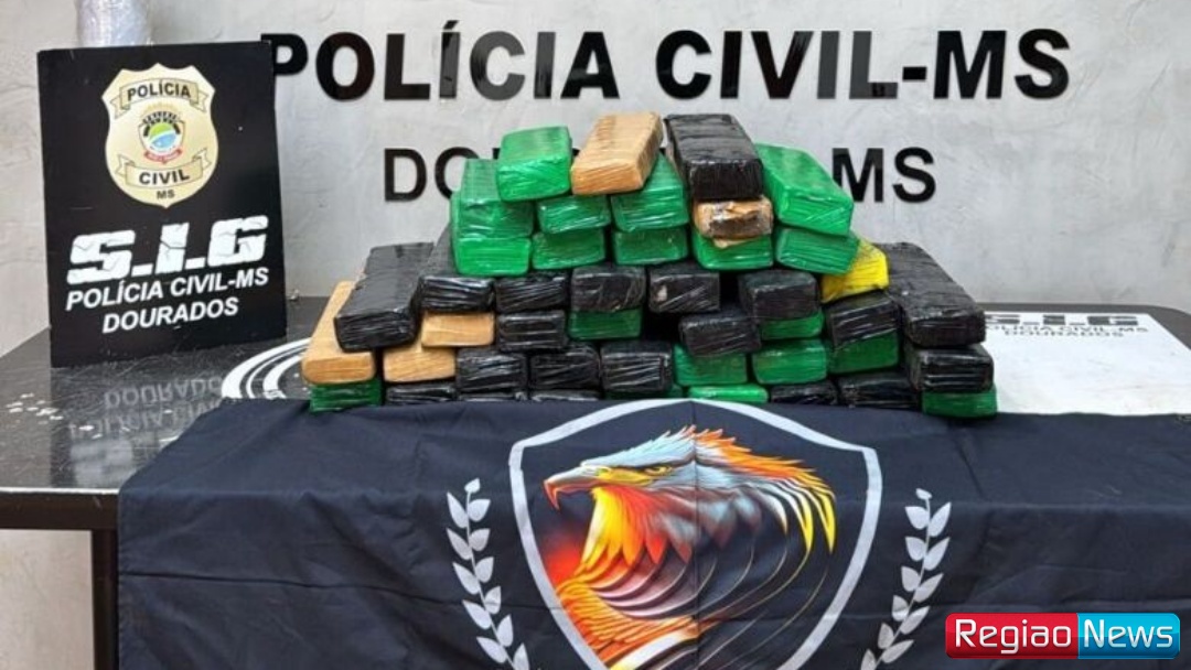 Cerca de 40 quilos de maconha foram apreendidos neste domingo (3) em uma quitinete localizada no Jardim dos Coqueiros, em Dourados. A droga estava escondida em uma falsa prensa de molas, utilizada como disfarce para dificultar a identificação do entorpecente.