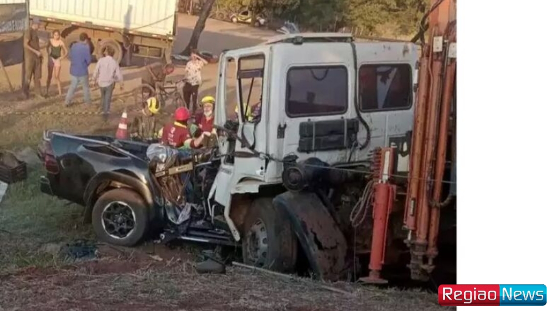 Pai e filho morrem em colisão entre caminhonete e caminhão
