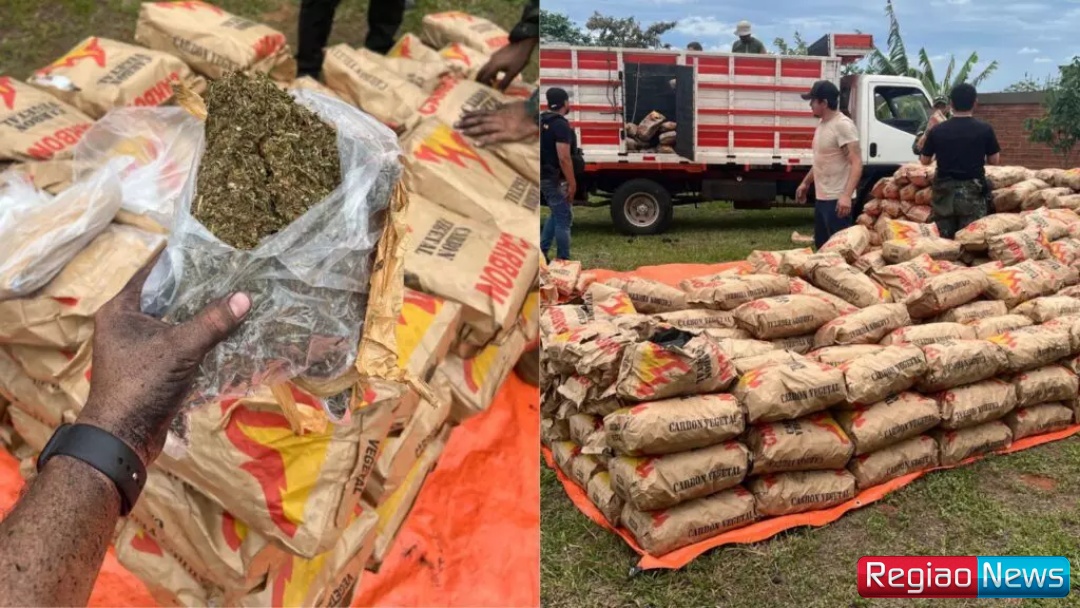 Parceria entre policiais do Brasil e Paraguai resulta em apreensão de maconha escondida em saco de carvão