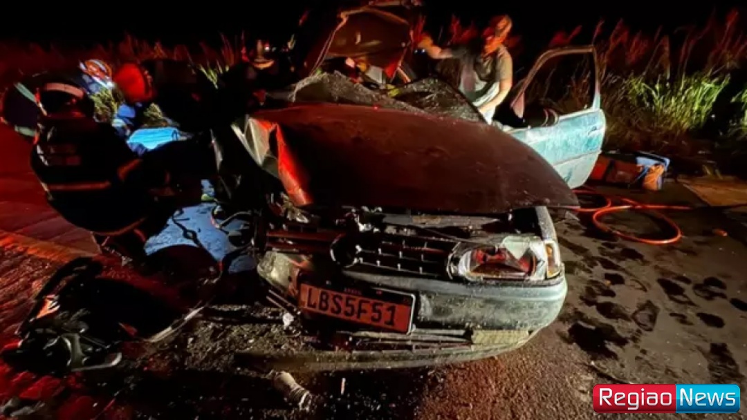 Passageiro fica preso às ferragens após carro bater em caminhão na MS-276 em Batayporã